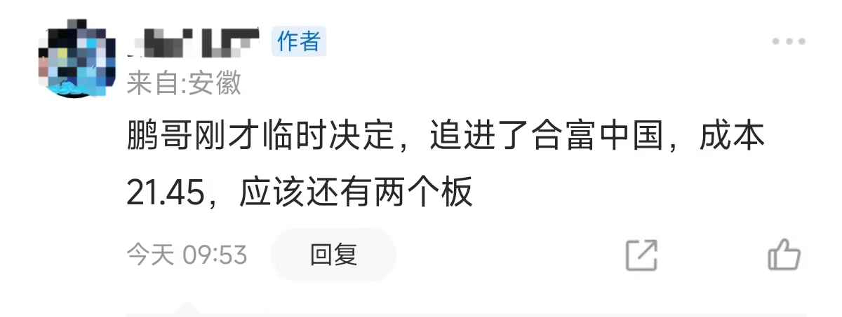 合富鹏哥前天就说观察上车,都是早盘犹豫了,没进得去,踏空了几个板,今早给机会了鹏哥肯定不会错过,它今天完全是被市场情绪带非了,加上游支加仓,散户也跟着凑热闹,热度还是很高的。基本面只能说中规中矩,但腰股从不看业绩,就看支金认不认,鹏哥看好还能两个板,但是没上车的也别冲,这种腰股回调起来也挺很。