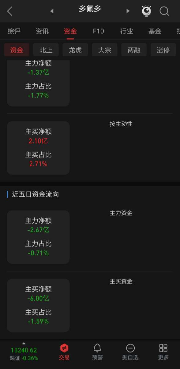 近氟化工高位主力以超大单和大单流出为主,接盘都是小散中小单。