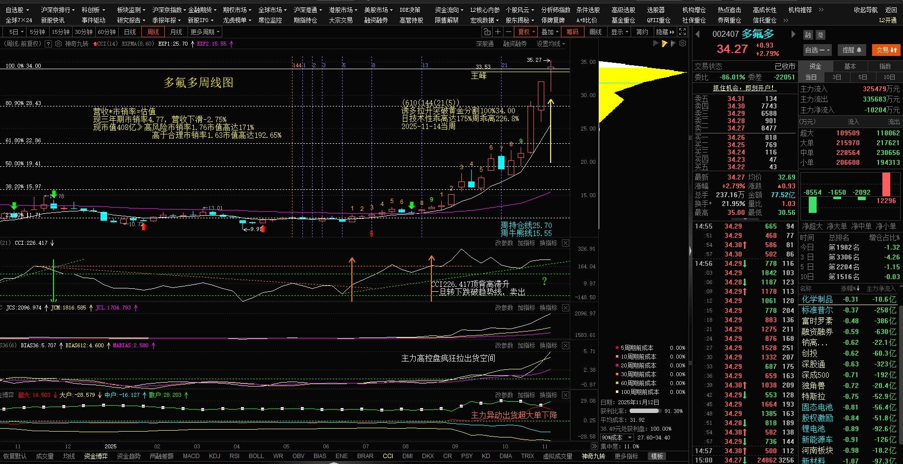 多氟多主力高控盘不假,要不,股价会创反弹新高?但股价在技术性乖离偏高就明显存泡沫,主力出货,控盘度必下降。