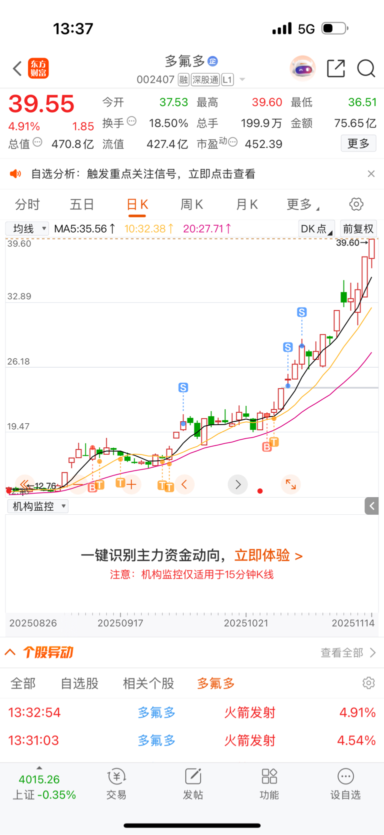$多氟多(SZ002407)$ 心累啊,周一想买回来的,就犹豫了,过后几天都香买回来,就是没上