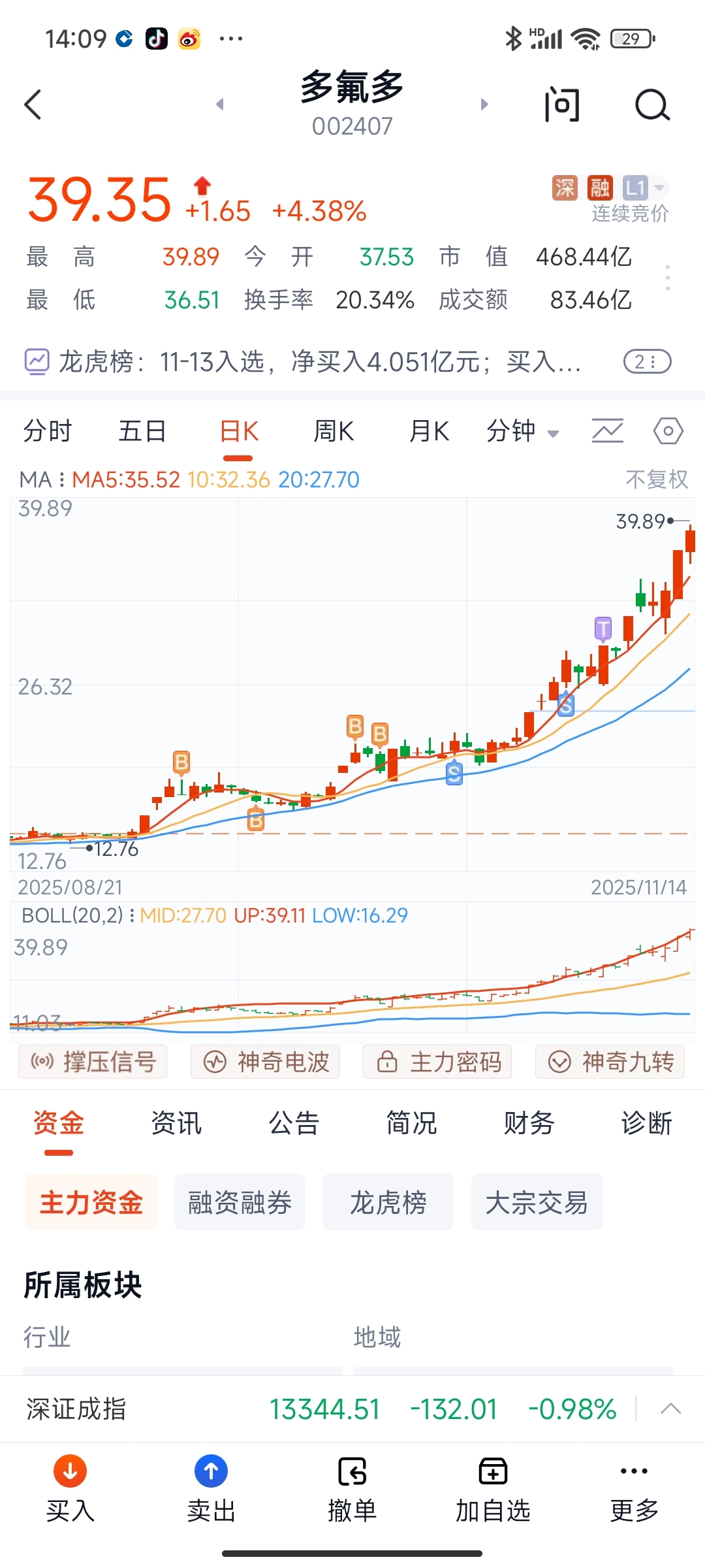 我是买了卖卖了买感觉赚了就卖一看还涨就买多氟多实不欺我啊就是一路向上