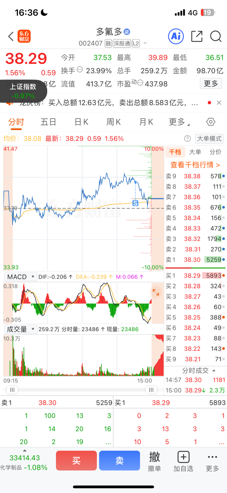 $多氟多(SZ002407)$ 还是看好的,本是准备继续拿着,但是尾盘跳水,保利为先,周一再接回来,不知道能否有低开上车机会,反正都是自己的操作,输了也认。