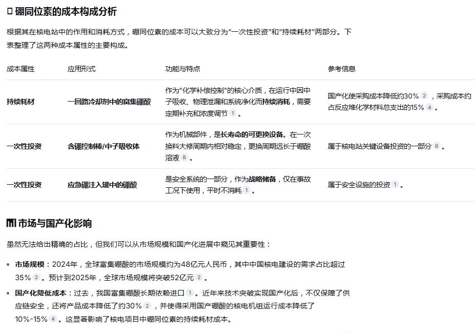 硼同位素这个不仅是核电站的一次性建设投资成本,而且也是运营成本的一部分,富集硼酸