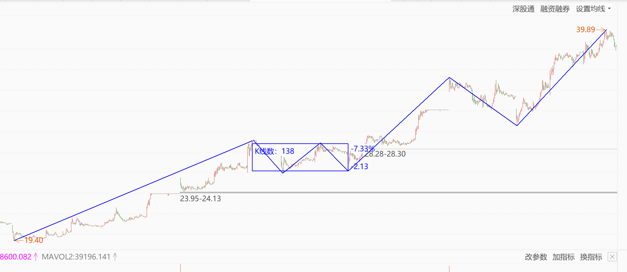 继续拿,卖飞后,重新读了一遍缠论,这是新画的图,卖飞的地方是3买,是加仓的点, 之前是直接用眼看没画图,错的离谱。