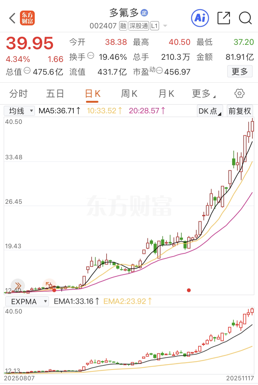 上周五给出低吸的V+专属多氟多今日盘中冲了两次40.50都没能突破上去…