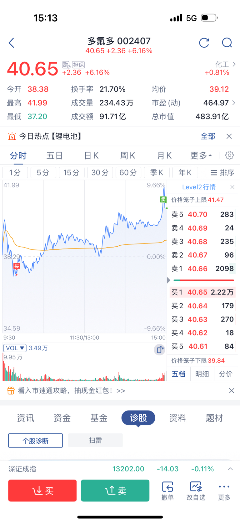 $多氟多(SZ002407)$ 做T,虽然没有卖在最高点,但是买在最低点了