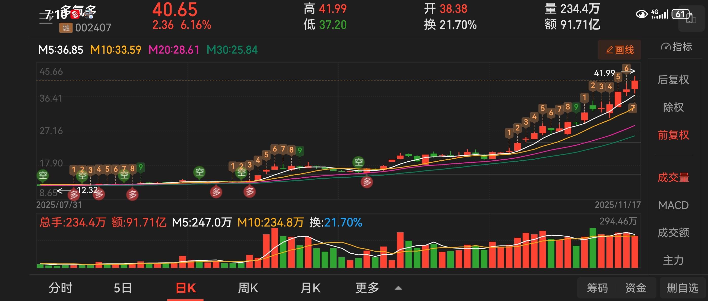 $多氟多(SZ002407)$ 不多看,短期主力资金十个亿也得看到46