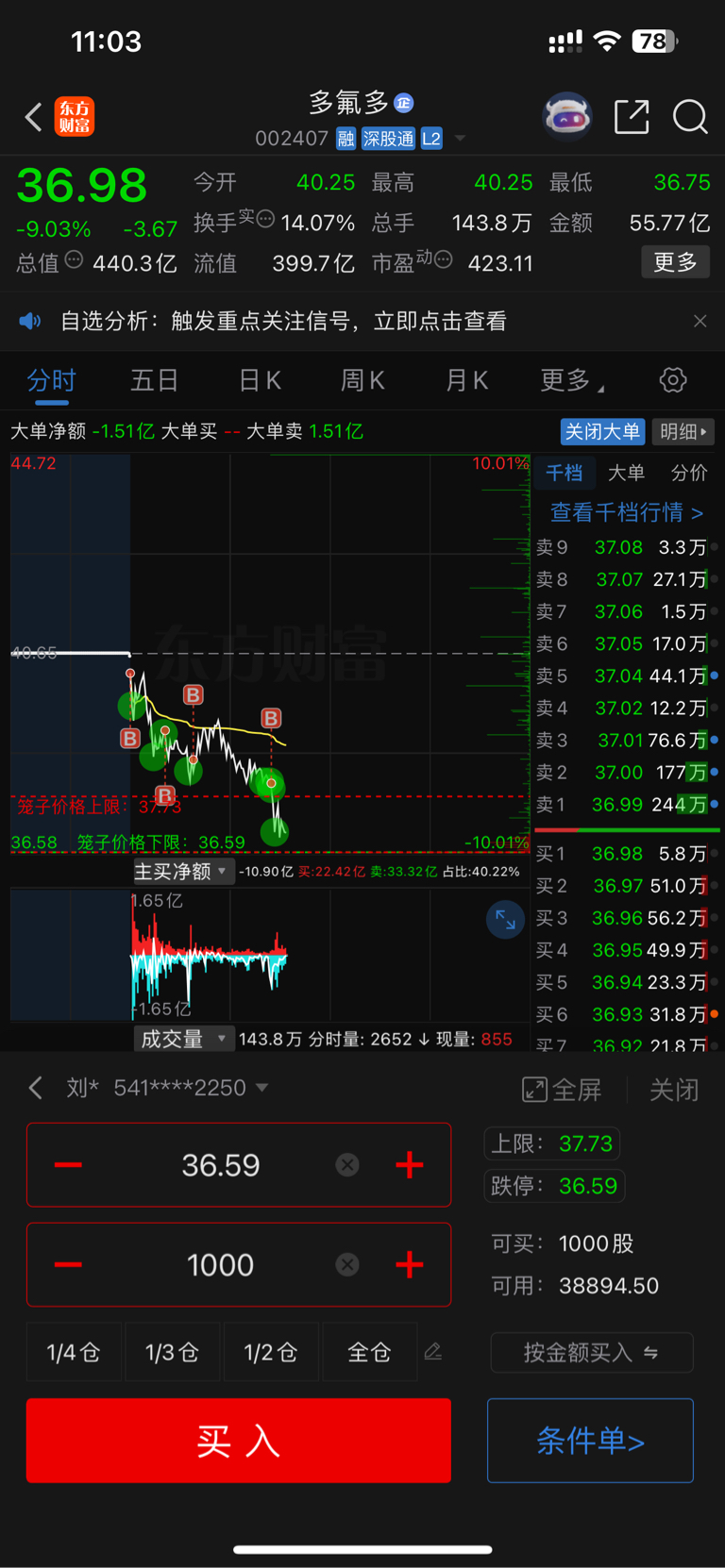 $多氟多(SZ002407)$ 今天我真不走,继续买入