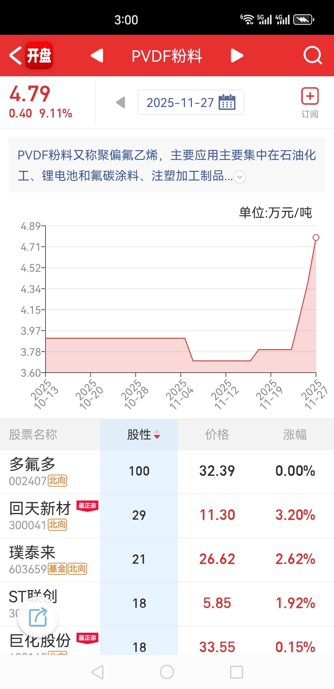 其实今天商品现货,按理涨幅最大的是PVDF粉料,涨了9个多点,万华化学下午都拉起