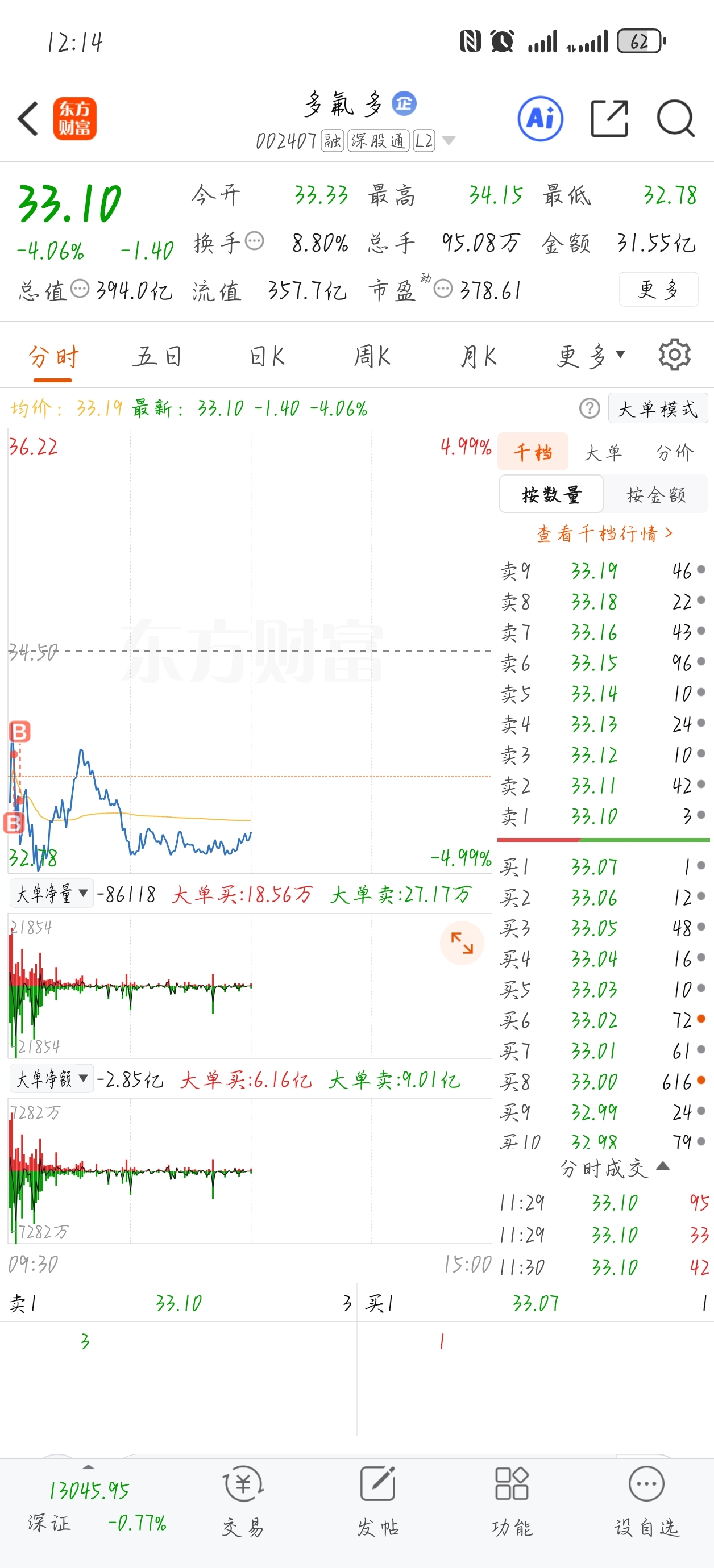 $多氟多(SZ002407)$ 兄弟们别砸盘了,今天就这样,明天让我少亏点出去。