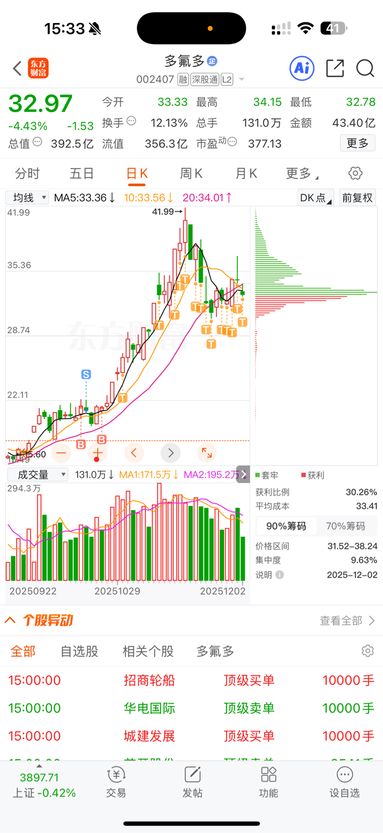 每天就t一个点左右,目前t了14次,大概t了11、12个点左右,涨跌让多多自行走