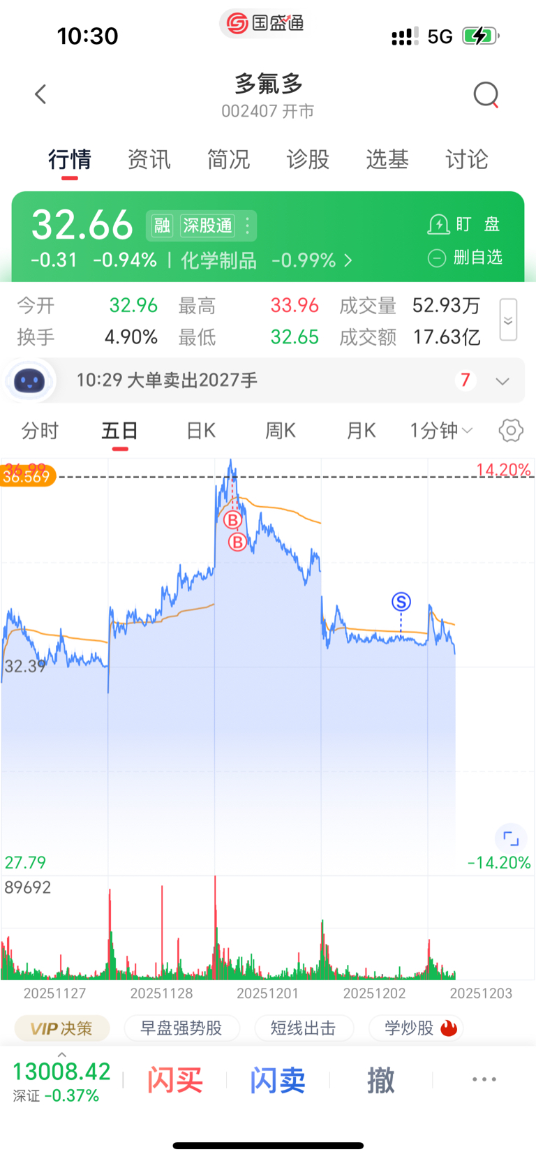 $多氟多(SZ002407)$ 这个点买入的有那个,我也是佩服我自己,两天亏十多个点