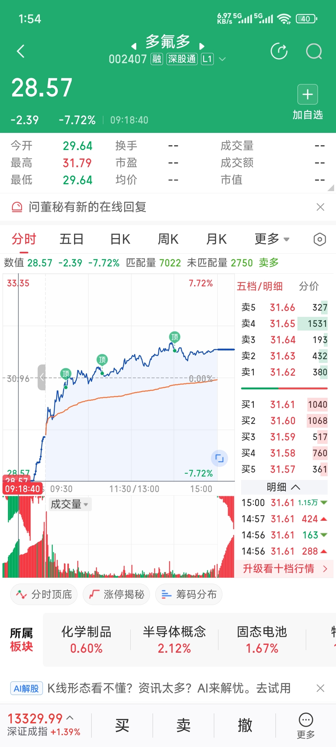 $多氟多(SZ002407)$ 早上有多少人被主力挂的假卖单给骗的割肉了?
