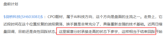 剑桥科技603083:它周五是放量冲高的阳线,表现也是非常不错了,创出小波段的新高。短期的思路,锚定十均线上方跟踪波段反弹行情,不破就问题不大。新Y盛和中际,市场给的G值是非常高的,它还有补张空间预期。市场行情配合的话,甚至有望冲前高啊。剑桥科技,是坤哥上周五早文分析的,当时讲了它具备重新走强的基础了,良性回踩后,这里有结束回踩企稳向上的预期。实际上,当日果然出现企稳的阳线。