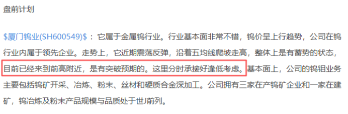 $厦门钨业(SH600549)$:它周五如期创出新高,表现非常强势啊,基本符合坤哥之前的预判。它上周连续在前高附近震荡蓄势,没有破位走弱,那就是突破的预期啊。目前它已经创出新高,上方已经没有任何阻力了,相信趋势的力量,继续锚定五均线上方跟踪趋势,不轻言结束啊。不破五均线就没啥问题的。钨价呈上行趋势,行业基本面非常不错的。厦门钨业,是坤哥上周二早文分析的,当时讲了它来到前高附近,有突破预期。并且后面几日,坤哥也一直在讲它蓄势后还有望突破。实际上,果然是这样啊。