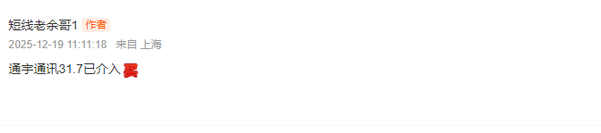 这票就是过山车的老玩家,早盘冲到35.2元的高点,涨幅一度涨超8%,老余以为没机会上车的,结果快速回落了,到了早文观察的区域,老余哥就上车了,最终微跌0.31%,作为通信设备+商业航天双赛道选手,虽然今天冲高回落,但通信设备板块认可度,核心逻辑没变。技术面上10日线支撑位稳如磐石,承接力强。老余的理由很实在,商业航天是长期风口,这票技术沉淀够深,现在回调只是短期洗浮筹。后续不跌破十日线不动,要是能重新站稳34元,还能小仓位加仓蹭行情。