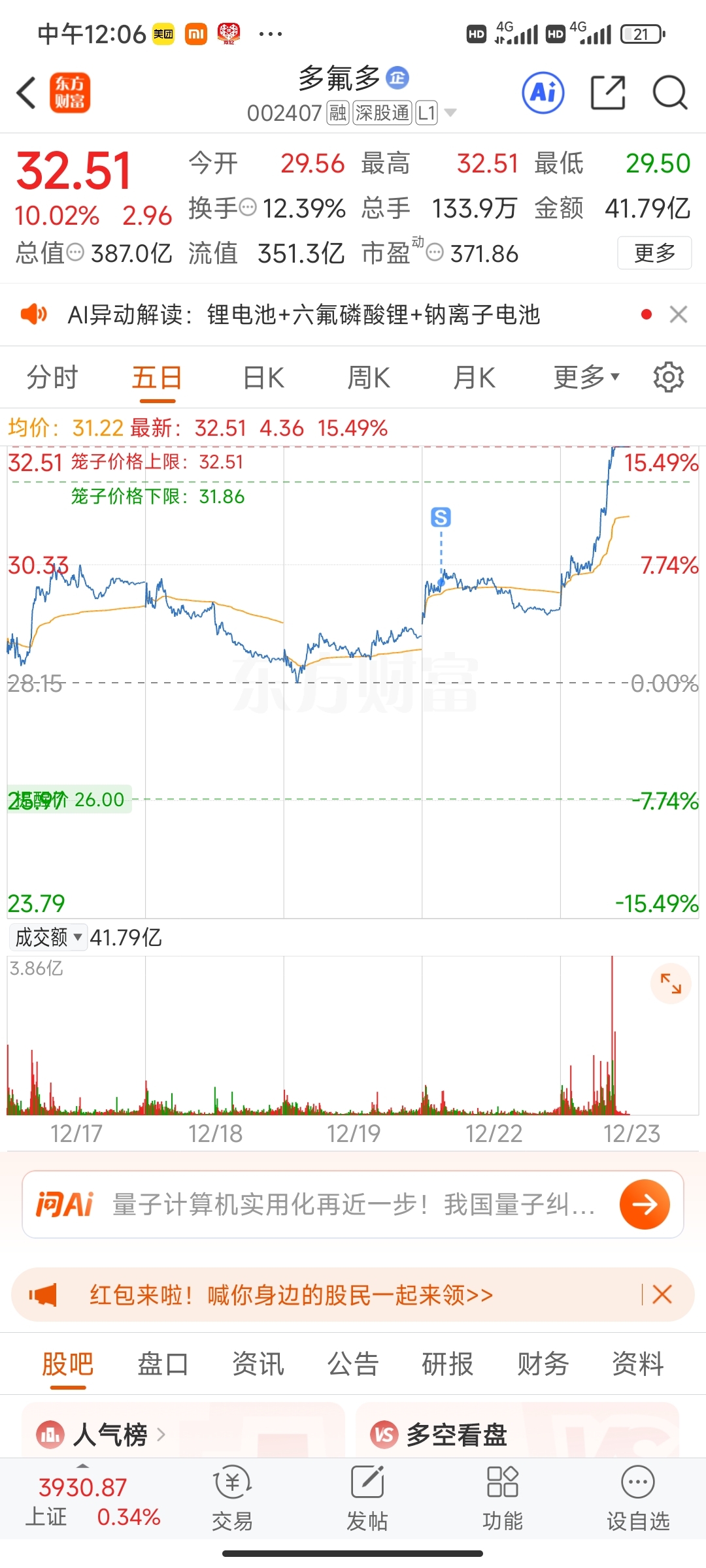 $多氟多(SZ002407)$ 我一卖就又涨停,真的无语