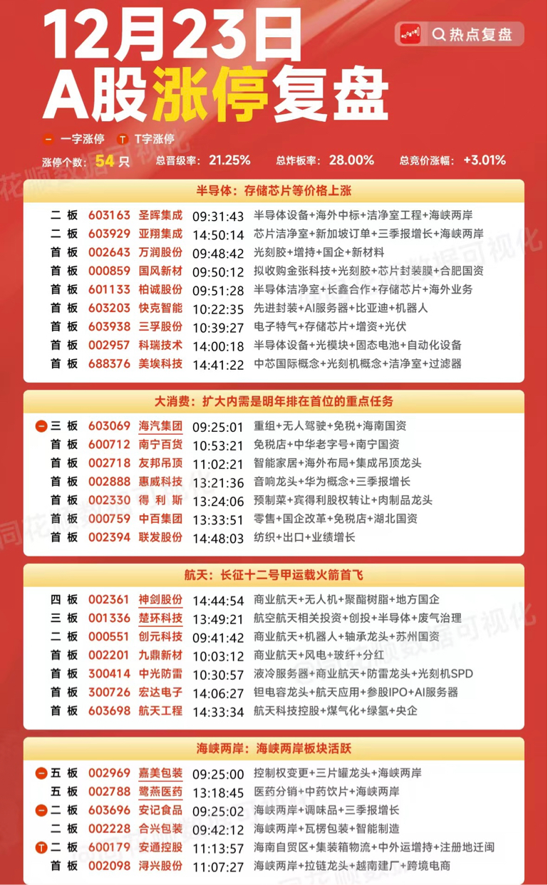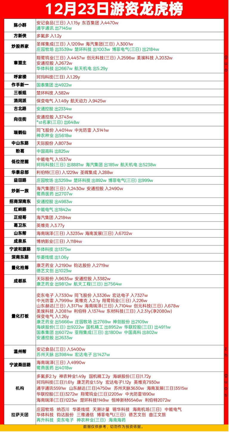 12月23日 各大板块涨停个股&游资龙虎榜复盘