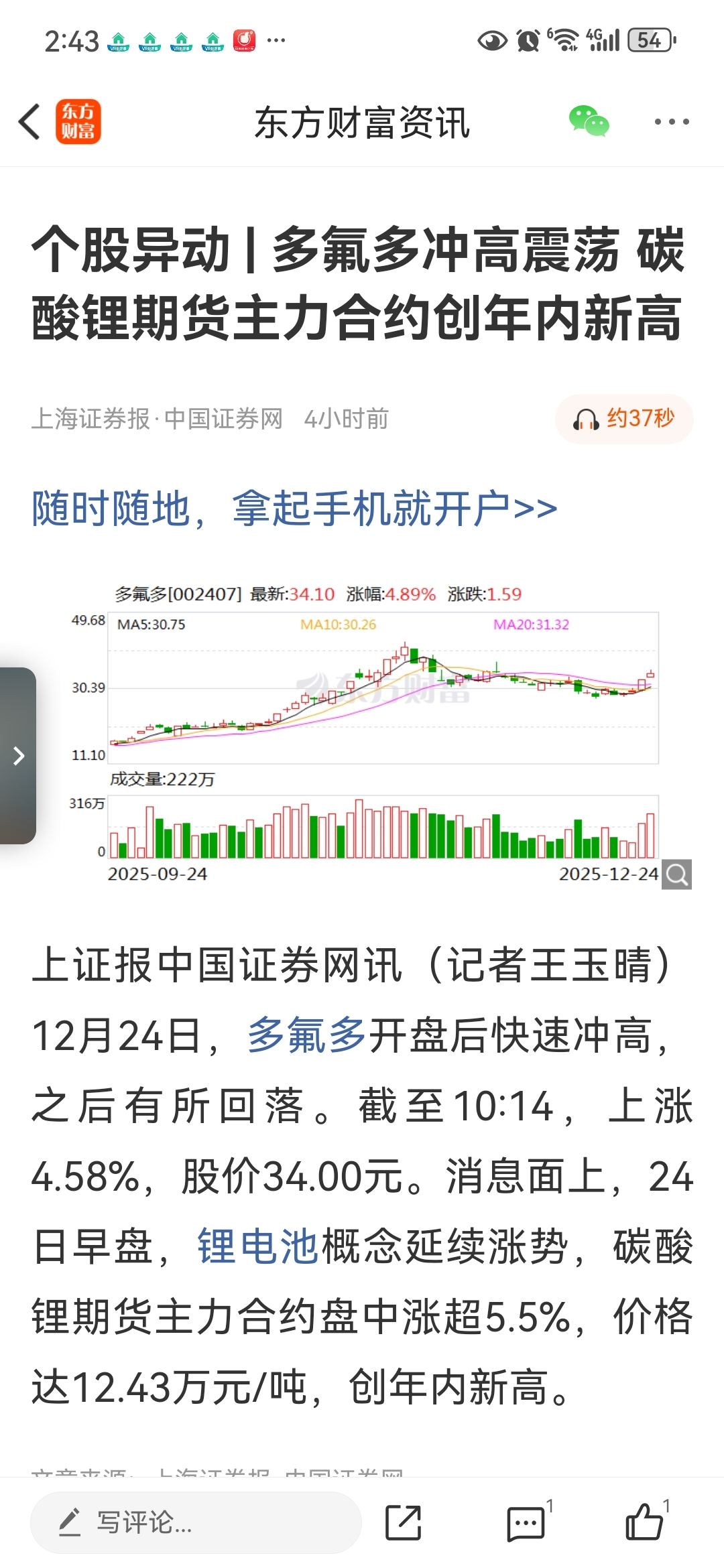 $多氟多(SZ002407)$ 明天高开高走