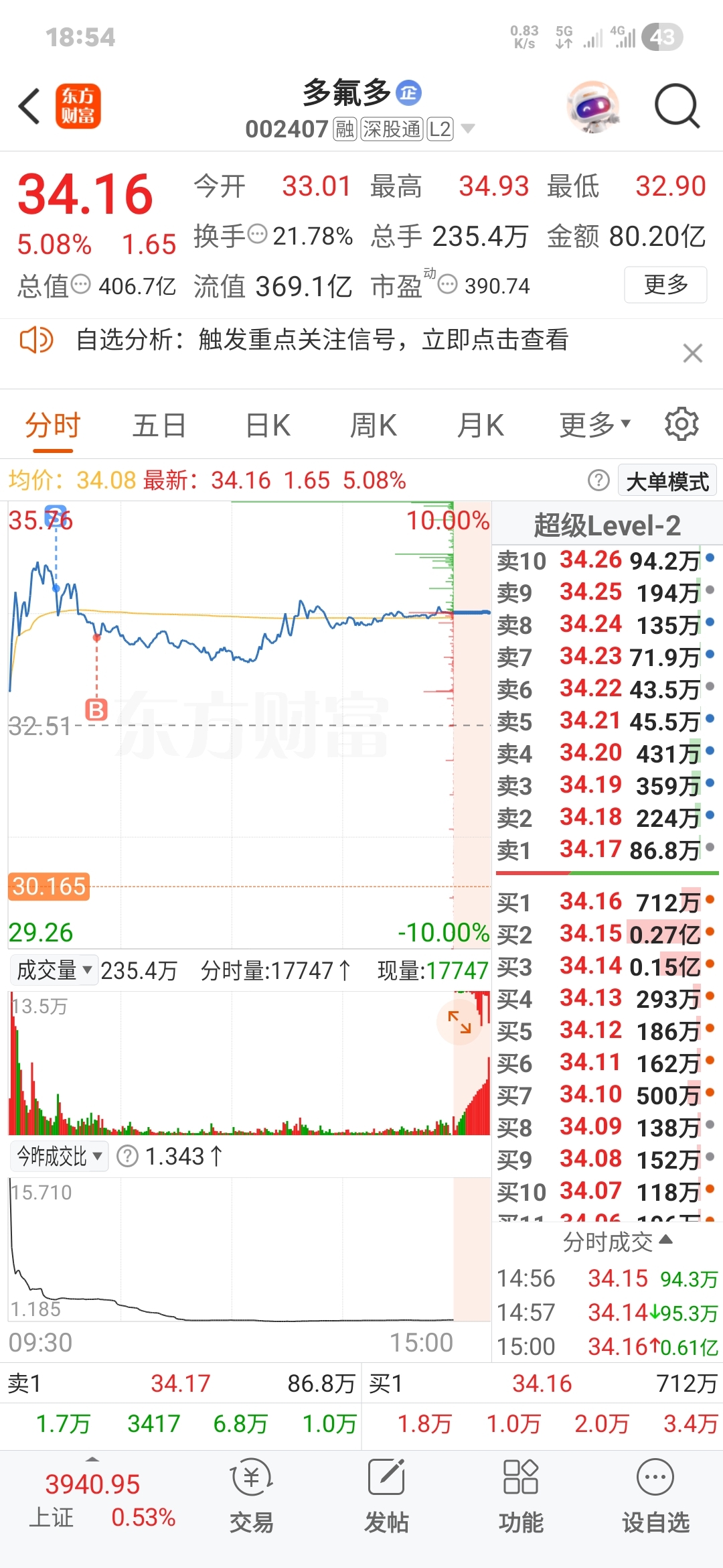 $多氟多(SZ002407)$ 有暗盘流入明天就算不是高开也会拉升几波适合做T记得做T。