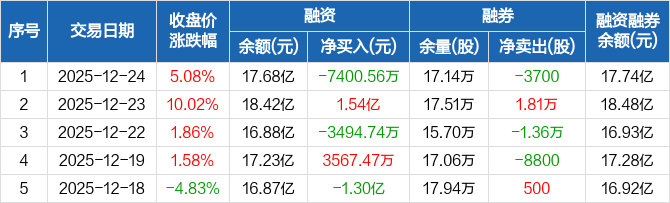 多氟多:融资净偿还7400.56万元,融资余额17.68亿元(12-24)