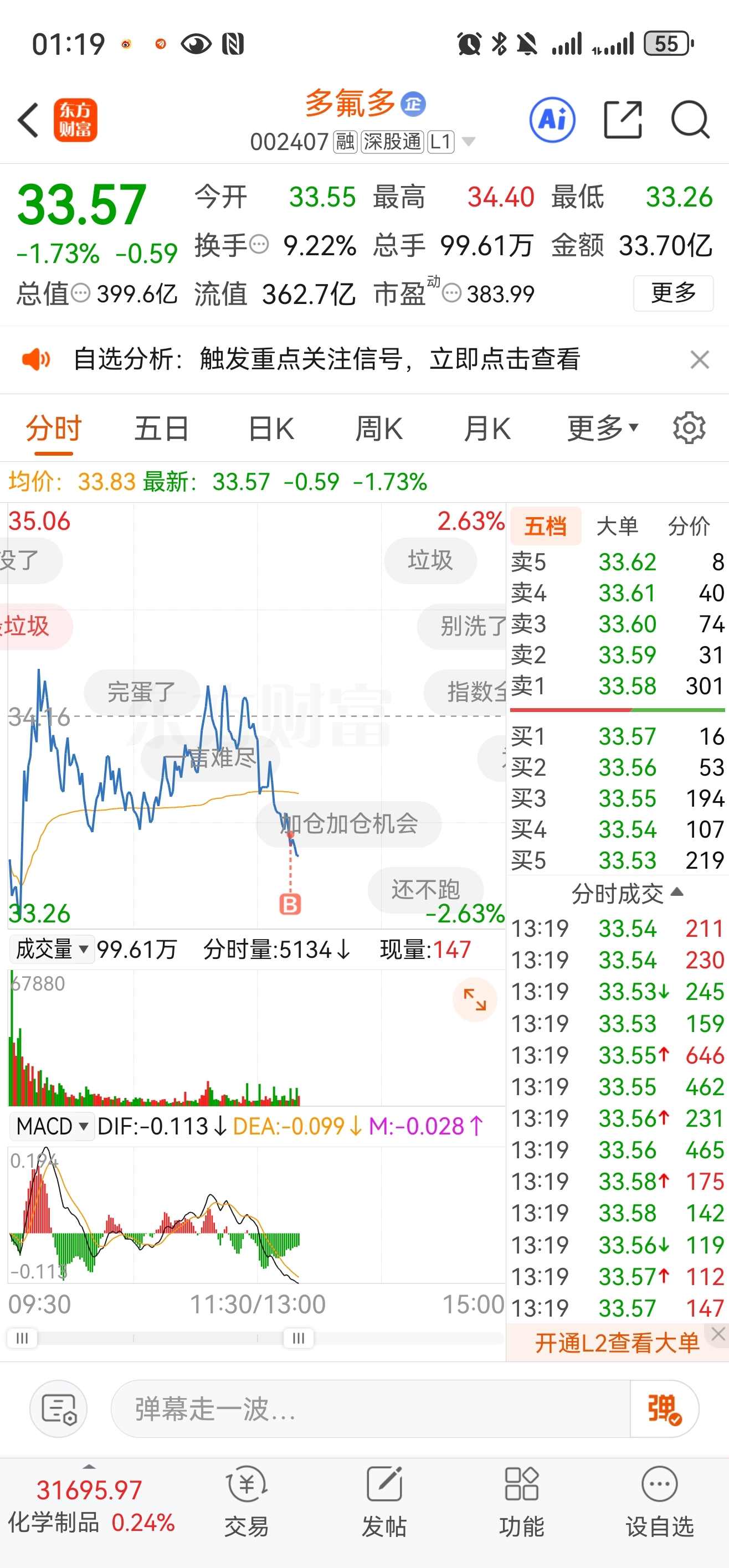 $多氟多(SZ002407)$ 没想到55还真能买到,我这一手买崩了?