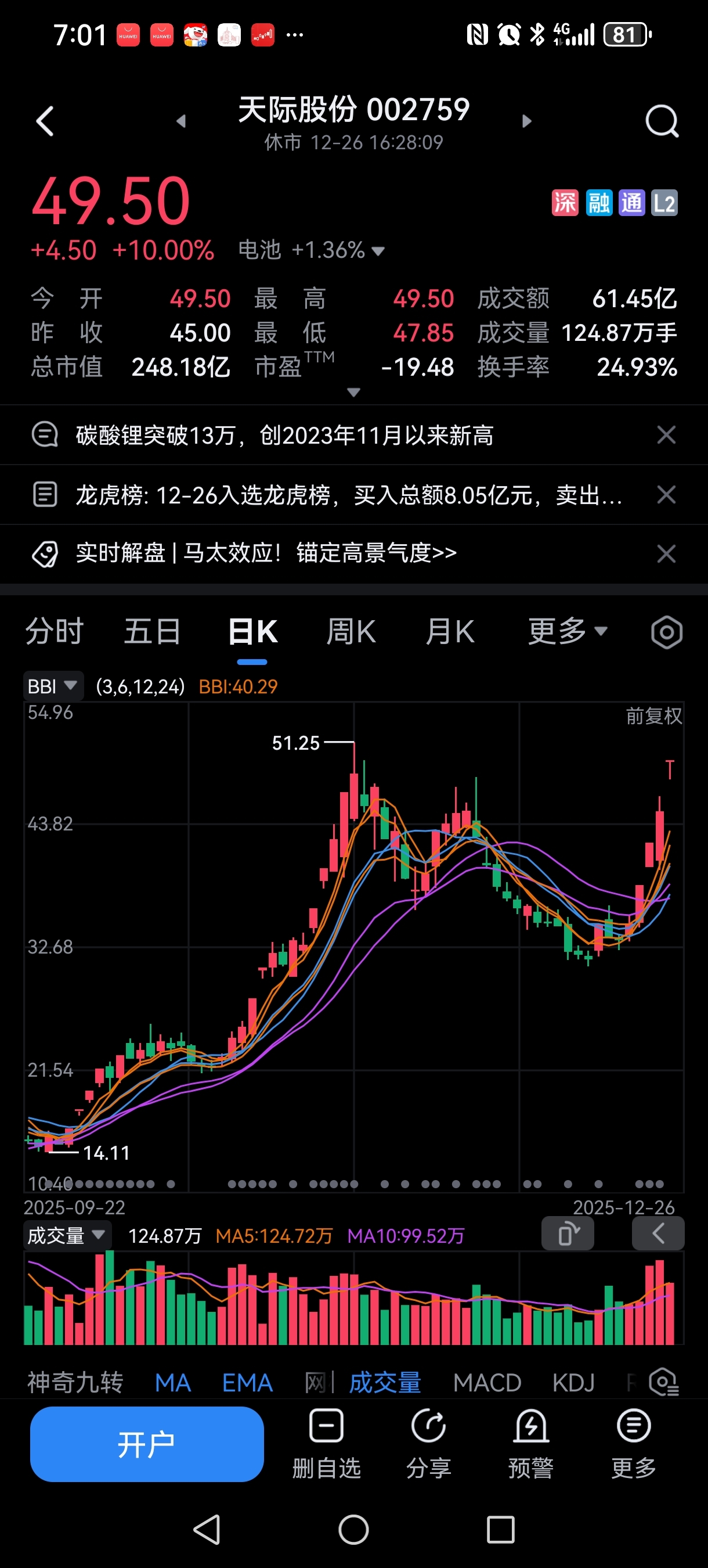 多氟多跟风的,不值得买。龙头天际,龙二宏源药业。
