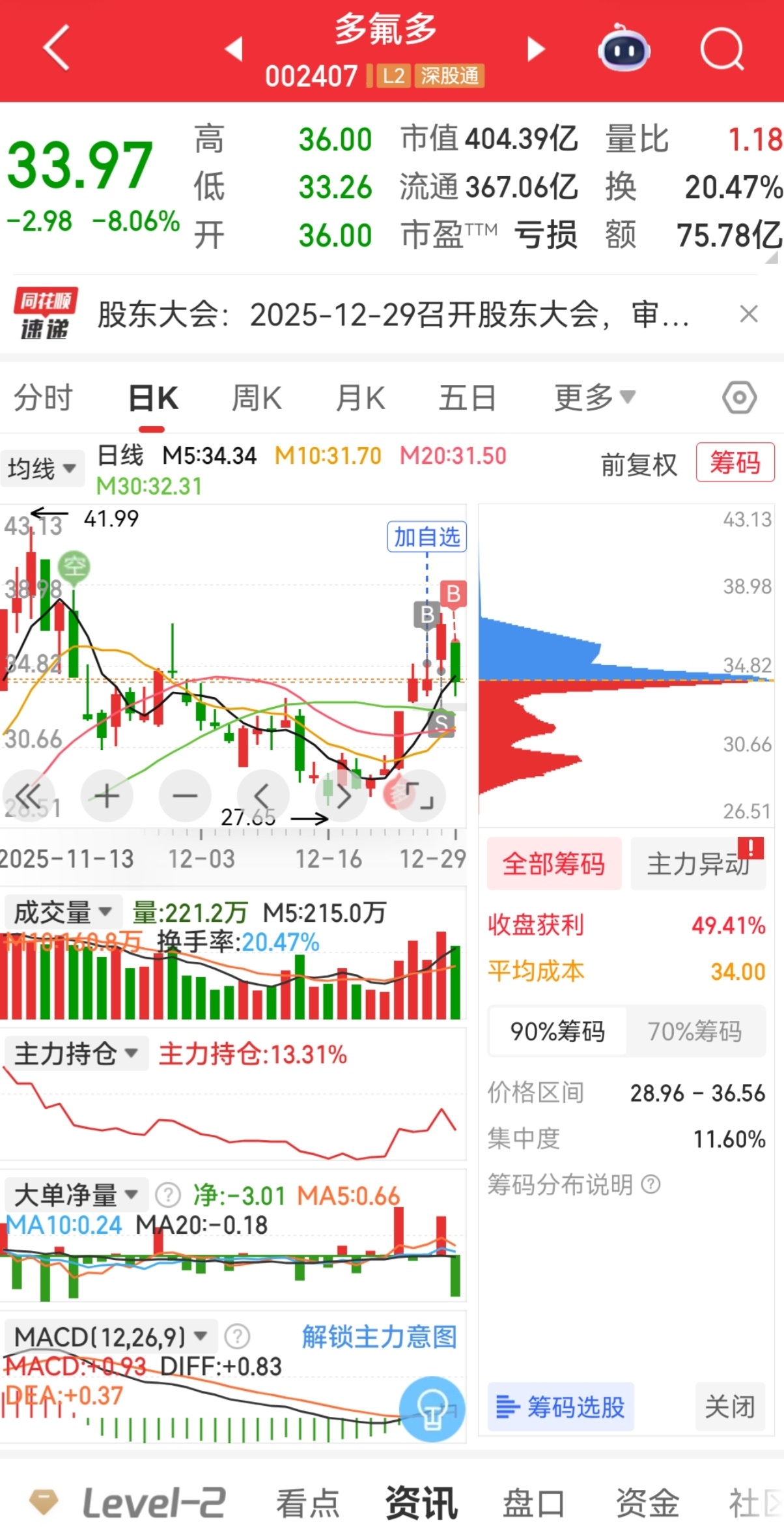 $多氟多(SZ002407)$ 洗盘洗的狠,赚钱确实哪里都难,早上应该抄底天际了,今天起码能浮盈5+点且榜单来看最次明也能体面进出。。。多多今天还浮亏一点,收的接近全天最低了。。。明天小阳震荡,收盘大阳甚至涨停主升浪!