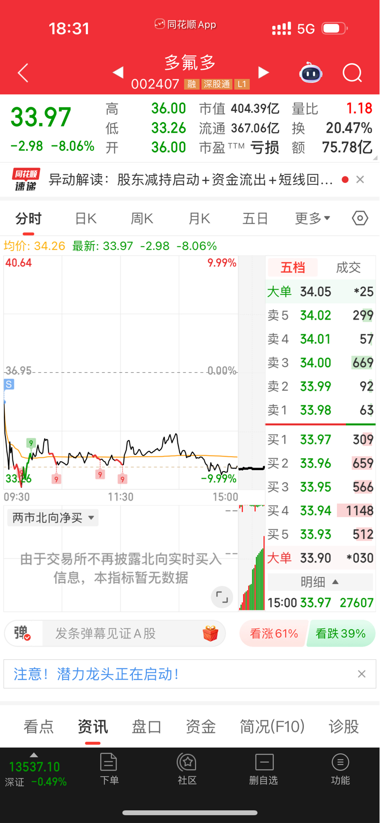 $多氟多(SZ002407)$ 竞价不及预期直接溜了