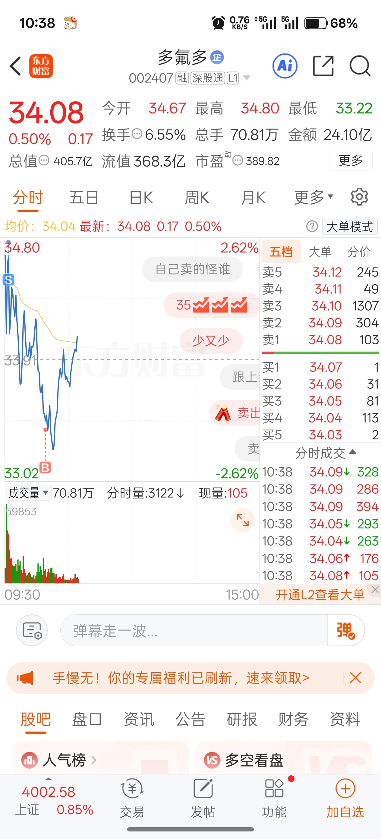 $多氟多(SZ002407)$ 卖了又买了,这个操作还行吧,开年大吉啊各位