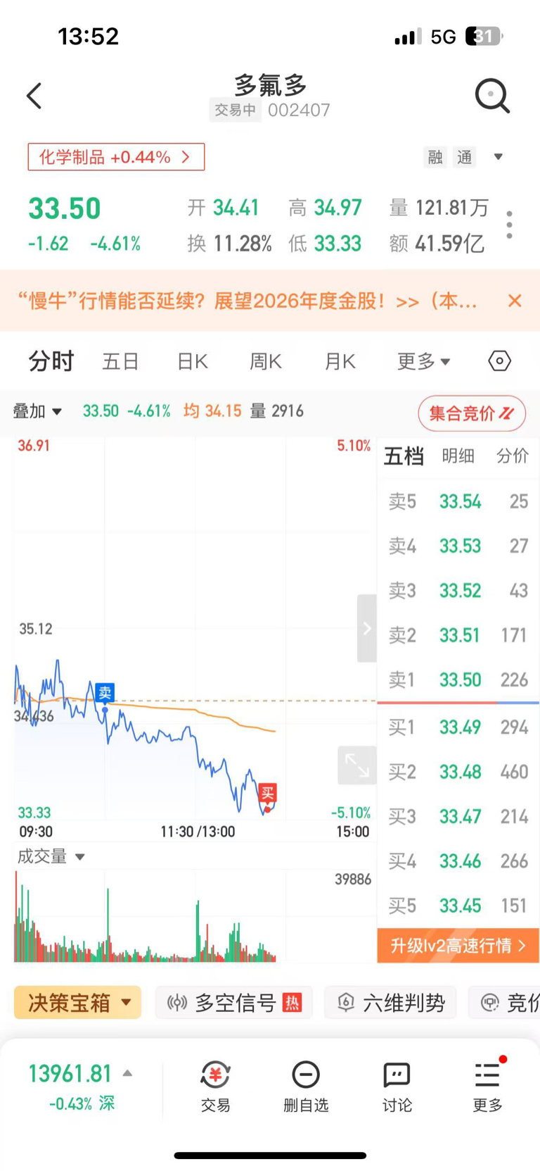 认亏-及时止损~本质原因是多晶硅反垄断暴跌~六氟涨价也狠、也有反垄断预期~所以主力一直在出货~对消息面联想还不够敏锐~主力早已洞察-这几天边拉高边出货~这三天t了3个点~趋势赌错了~亏损3%
