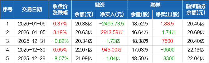 多氟多:融资净偿还2495.73万元,融资余额20.38亿元(01-06)