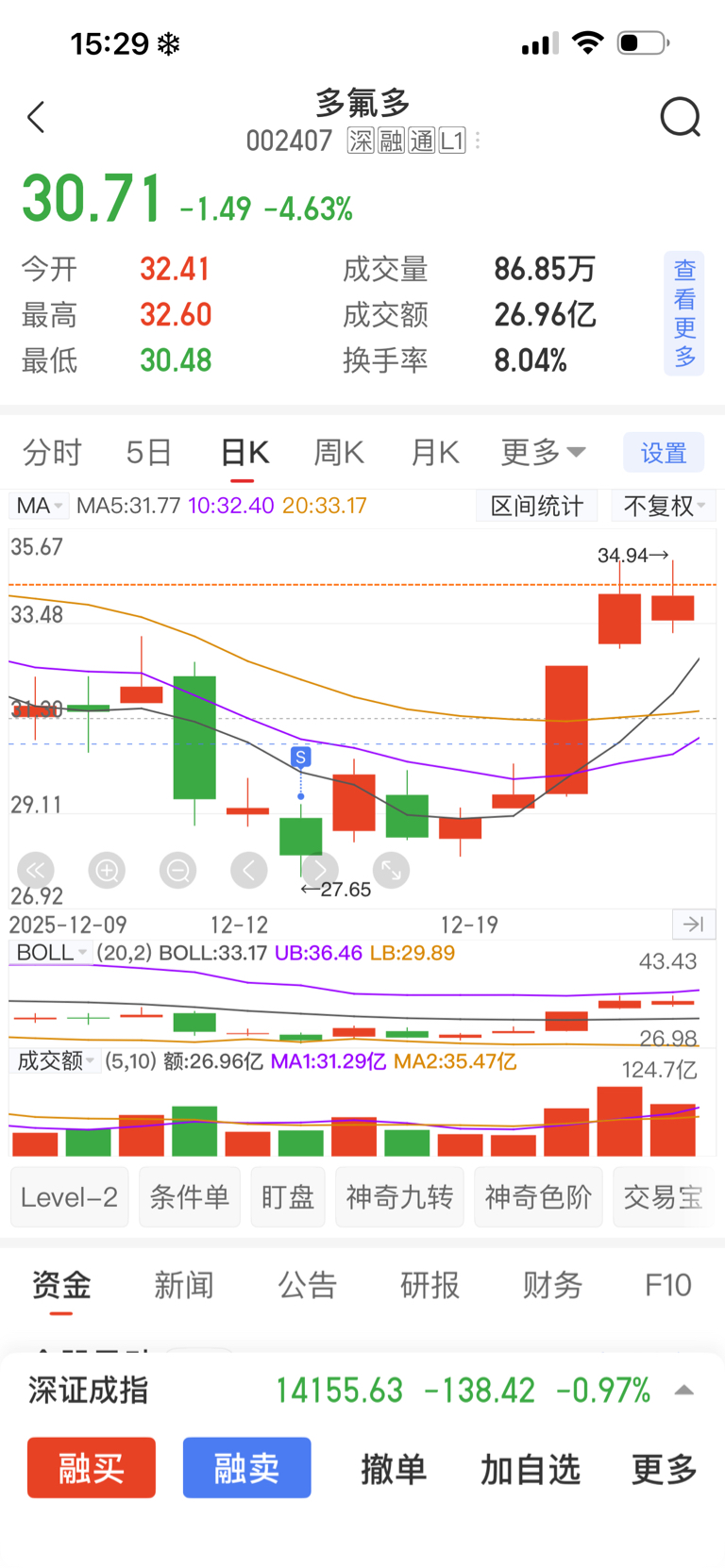 $多氟多(SZ002407)$ 我没割肉,不会涨,上次割了立马涨