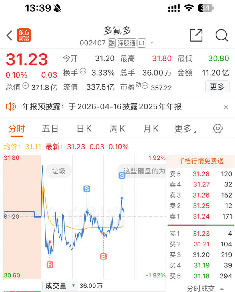 $多氟多(SZ002407)$ 这么玩是让我一直t么