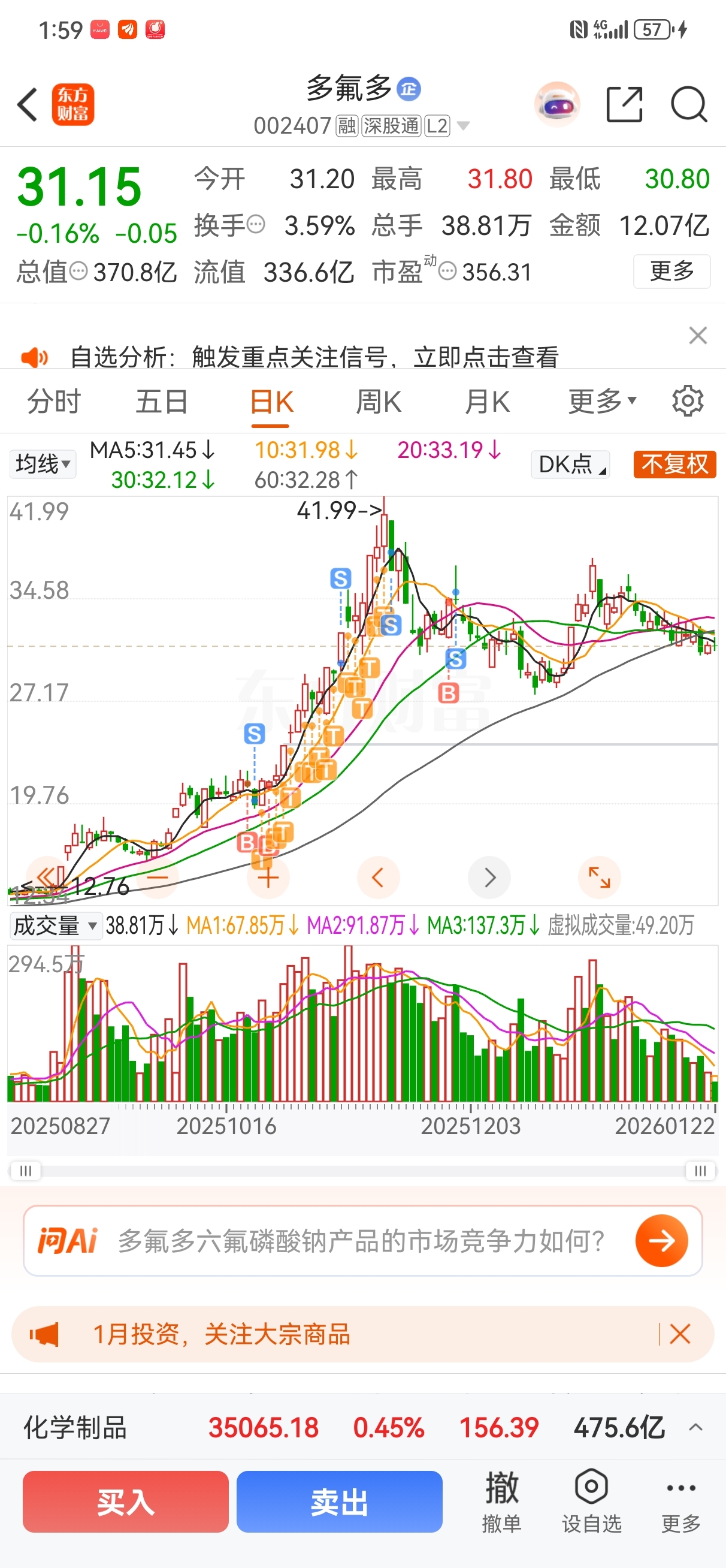 $多氟多(SZ002407)$ 看看永太,看看你,在等你20天,不修复,删除自选