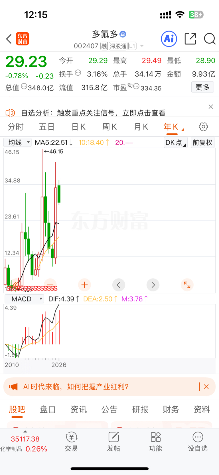$多氟多(SZ002407)$ 看年线是大涨一年跌三年