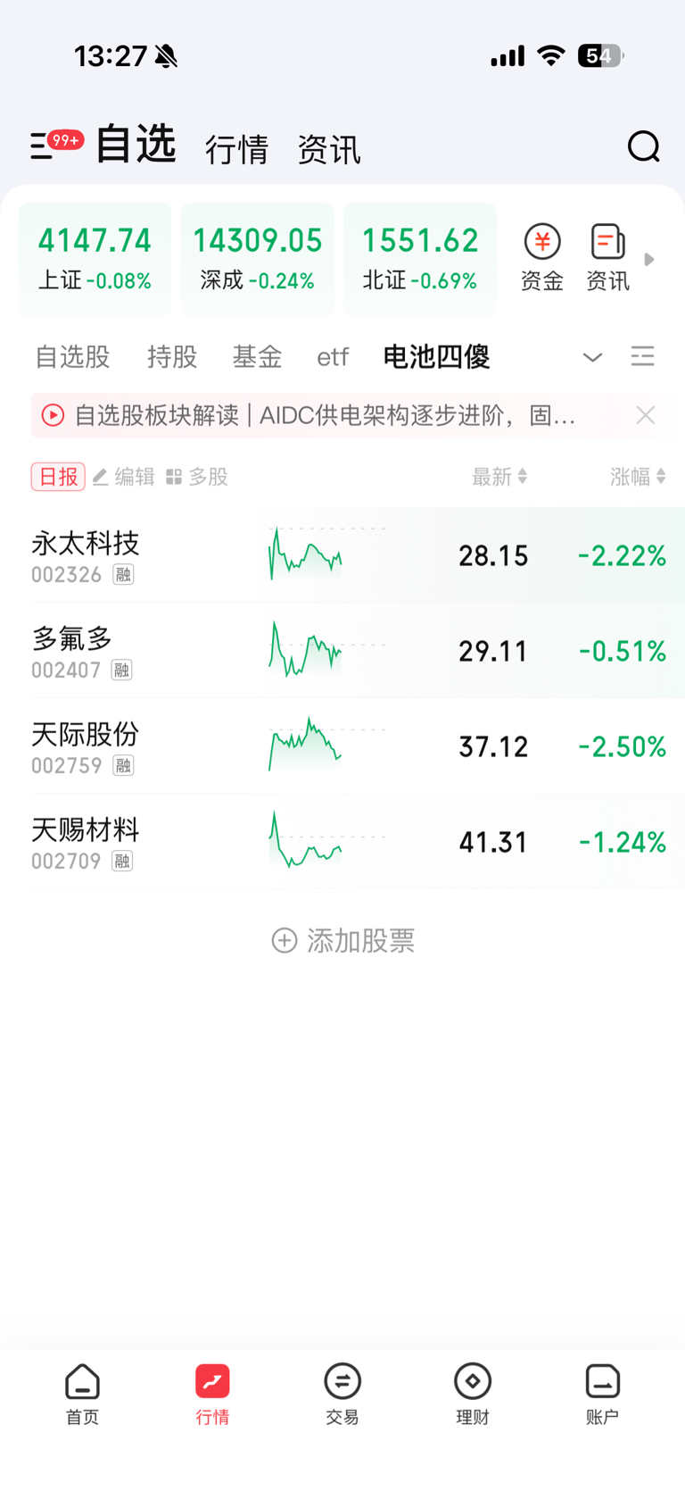 $多氟多(SZ002407)$ 你今天竟然是跌的最少的那一个