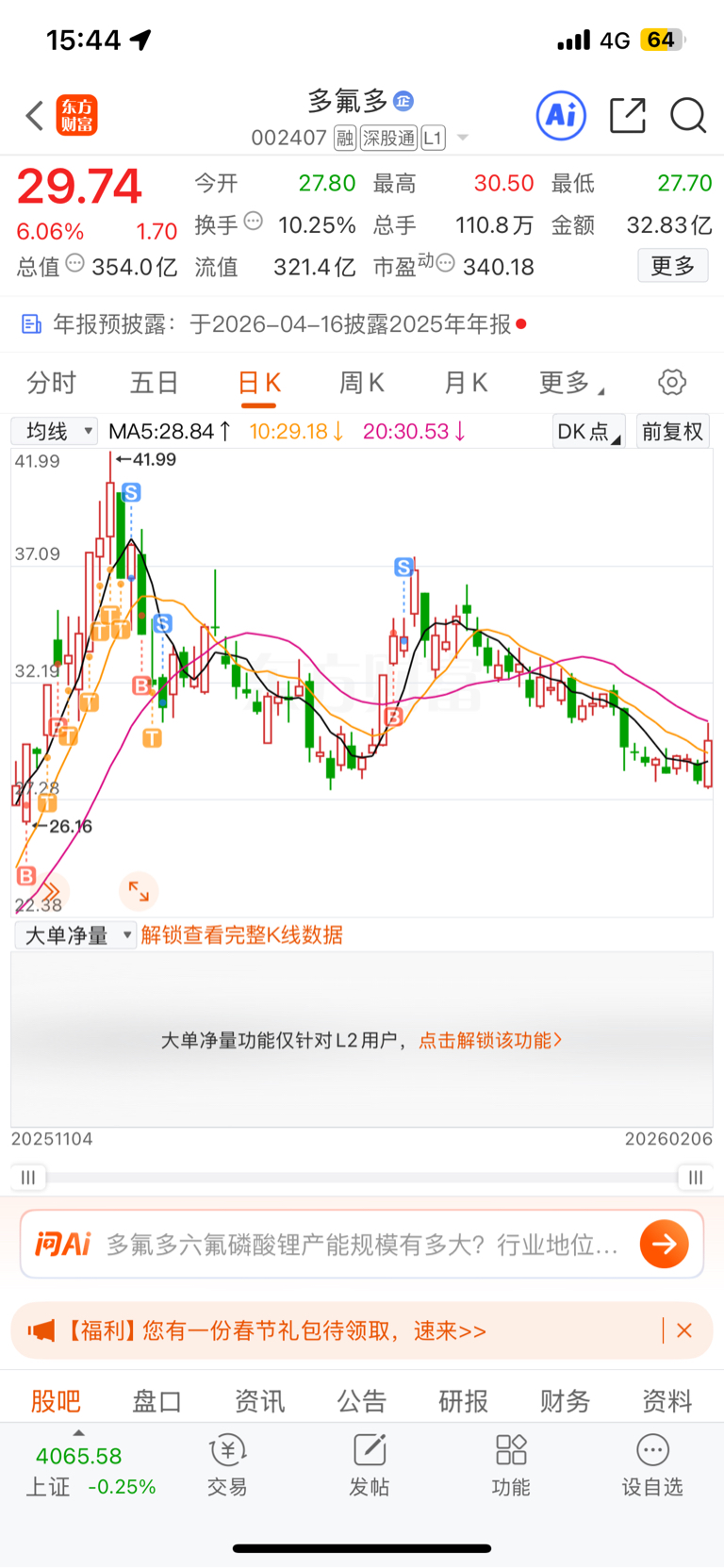 $多氟多(SZ002407)$ 从日线图来看,已经到底部,调整完毕,板块上升,先冲破35吧