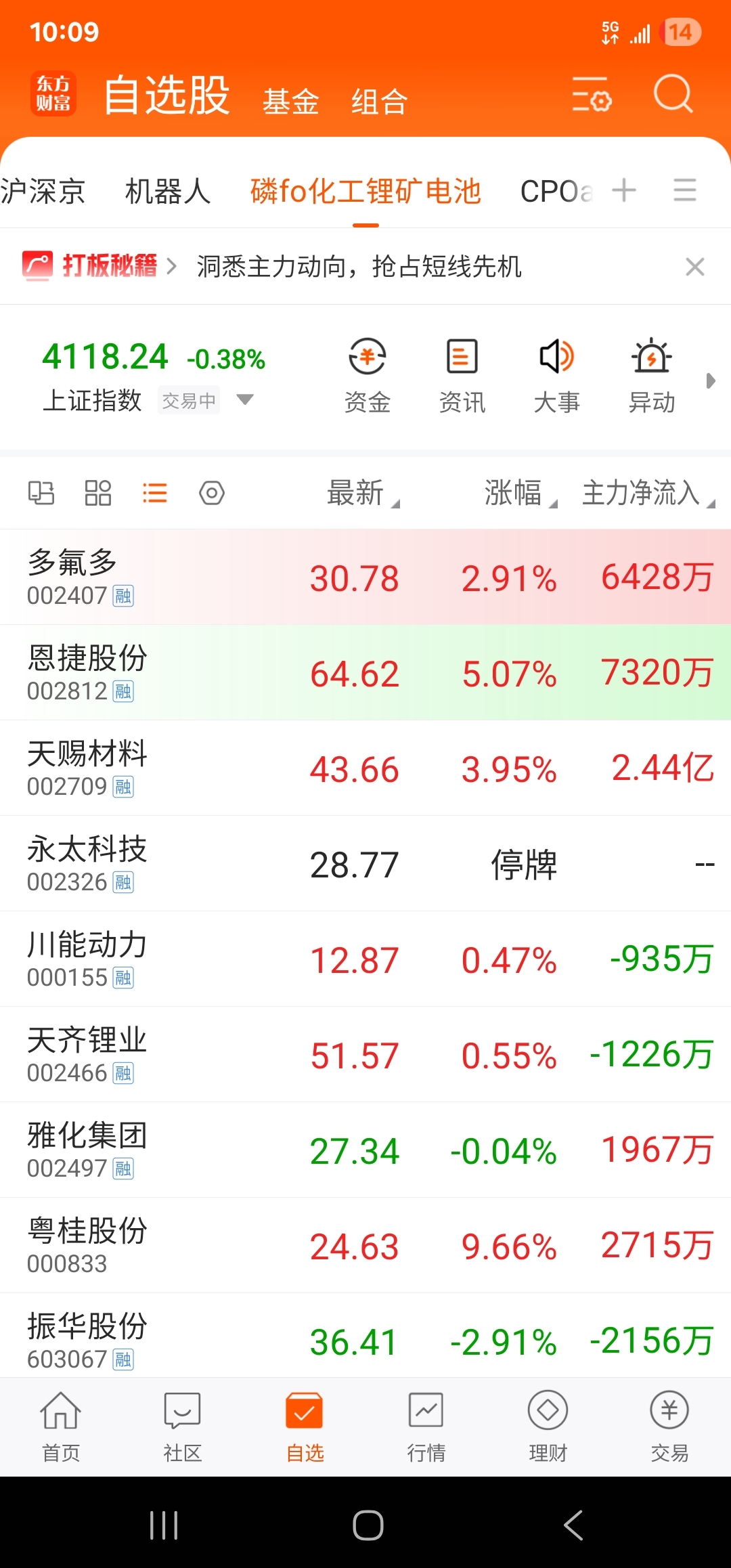 $多氟多(SZ002407)$ 依旧涨不过别人 不是前天买高了2毛钱套住早就把你卖了
