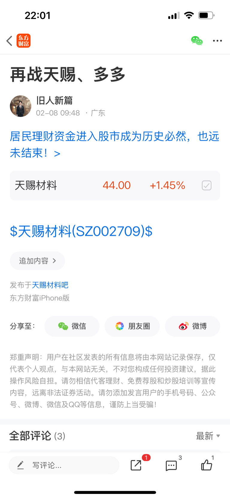 温馨提示: 1.根据《证券法》规定,禁止编造、传播虚假信息或者误导性信息,扰乱证券市场;2.用户在本社区发表的所有资料、言论等仅代表个人观点,与本网站立场无关,不对您构成任何投资建议。用户应基于自己的独立判断,自行决定证券投资并承担相应风险。《东方财富社区管理规定》