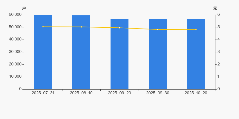2025年7月31日至今,公司股东户数有所下降,区间跌幅为5.21%。2025年7月31日至2025年10月20日区间股价下降4.17%。