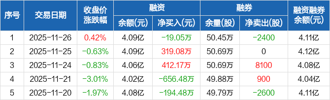 齐翔腾达:融资净偿还19.05万元,融资余额4.09亿元(11-26)