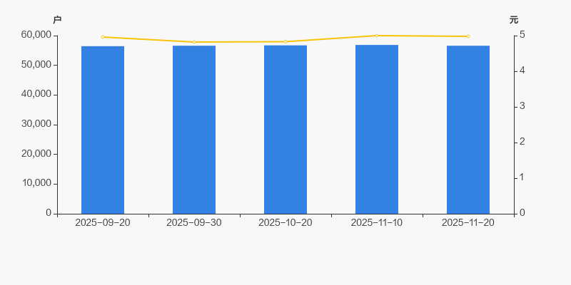 2025年9月20日至今,公司股东户数有所增长,区间涨幅为0.27%。2025年9月20日至2025年11月20日区间股价上涨0.40%。