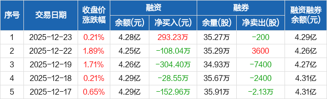 齐翔腾达:融资净买入293.23万元,融资余额4.28亿元(12-23)