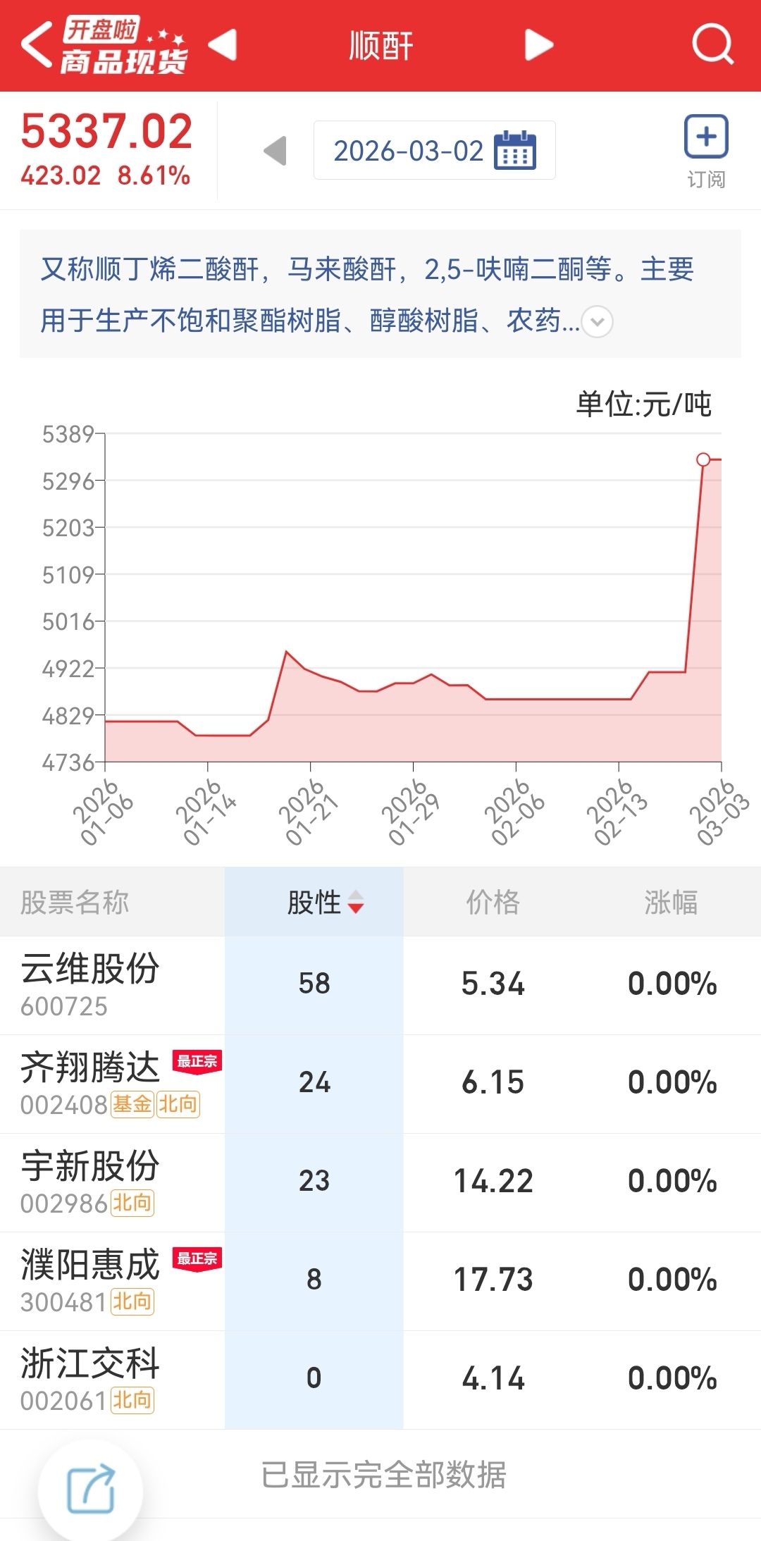 $齐翔腾达(SZ002408)$ 顺酐价格大涨