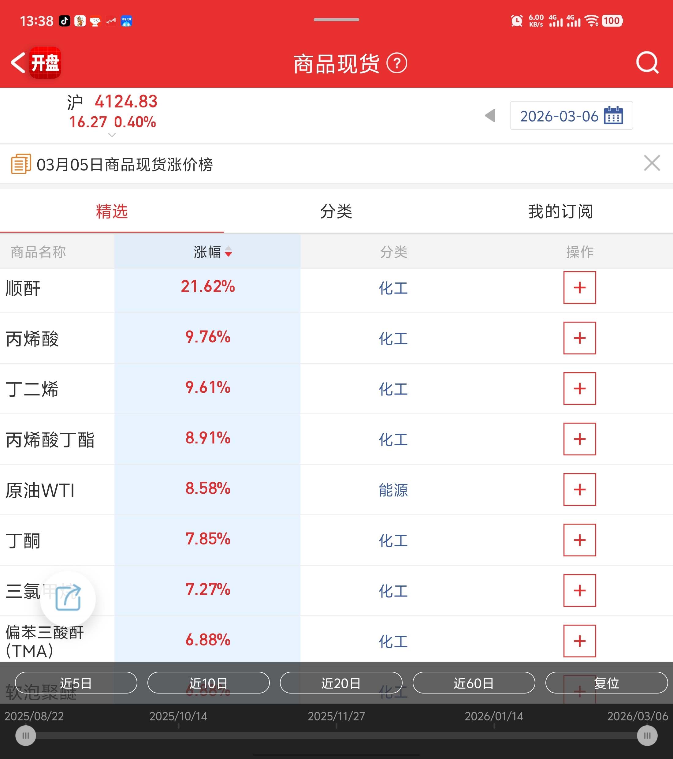 $齐翔腾达(SZ002408)$ 价格出来了,齐翔腾达30多个化工品,霸占涨幅榜。