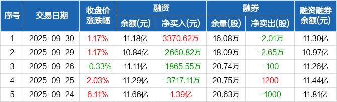 雅克科技:融资净买入3370.62万元,融资余额11.18亿元(09-30)
