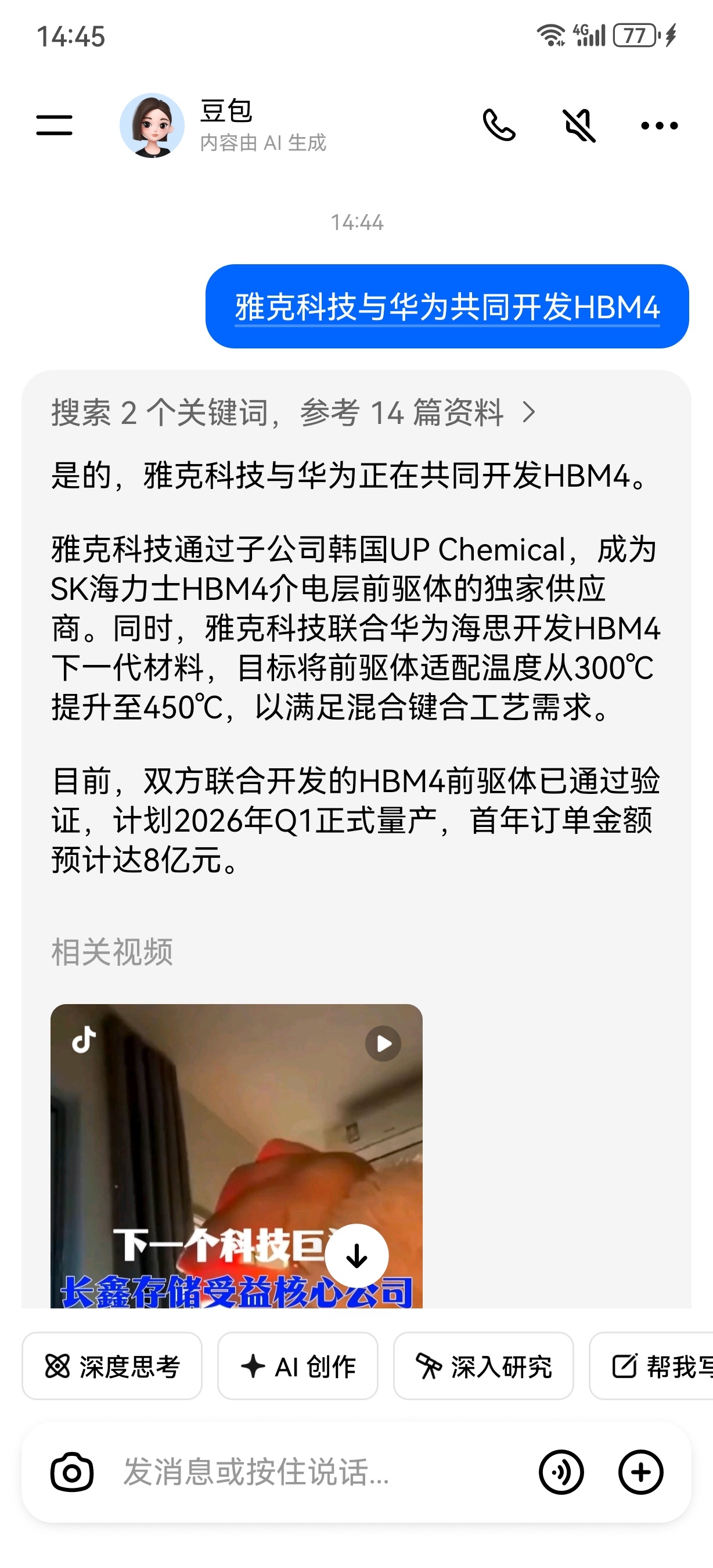 $雅克科技(SZ002409)$ 这个股太稀缺了,厉害在全国唯一HBM4供应商,这个是最新的技术了,而且和华为共同开发HBM4,大家可以查一查