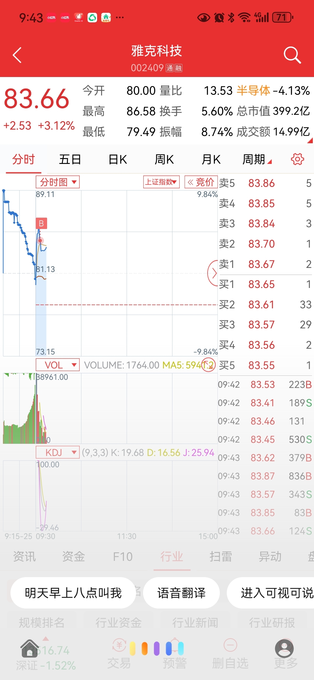 $雅克科技(SZ002409)$ 加仓两成,下周二,看100