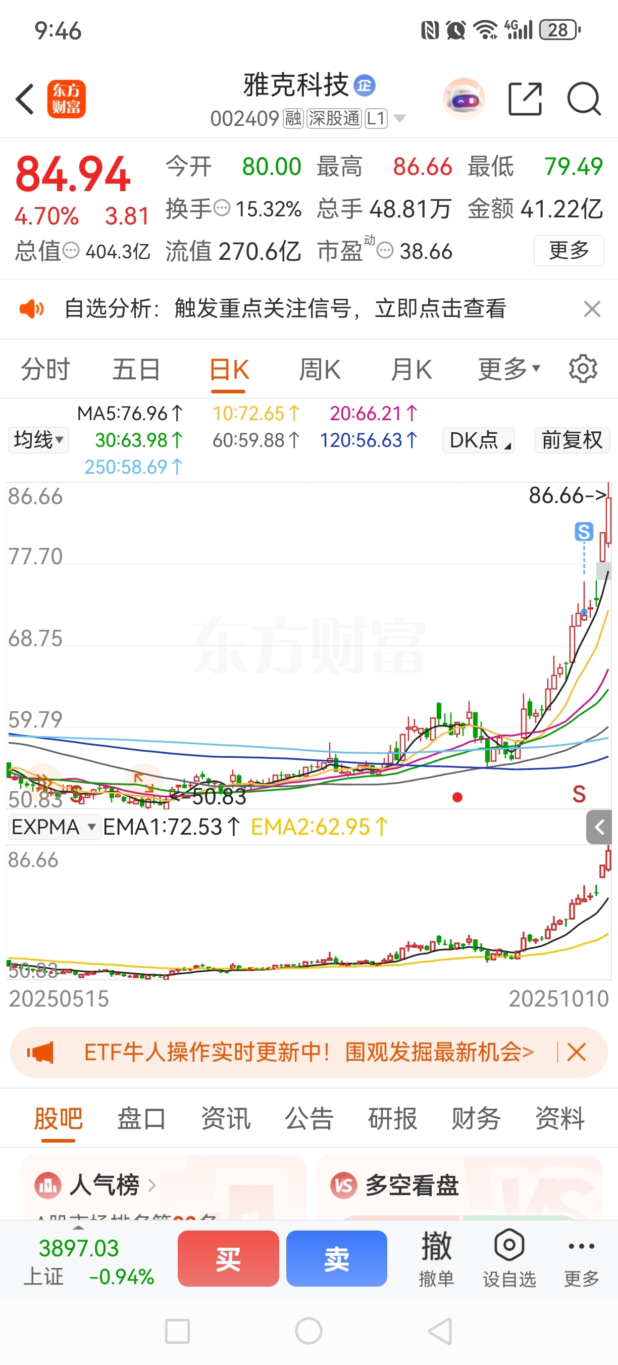 $雅克科技(SZ002409)$ 完了,彻底追不回来了